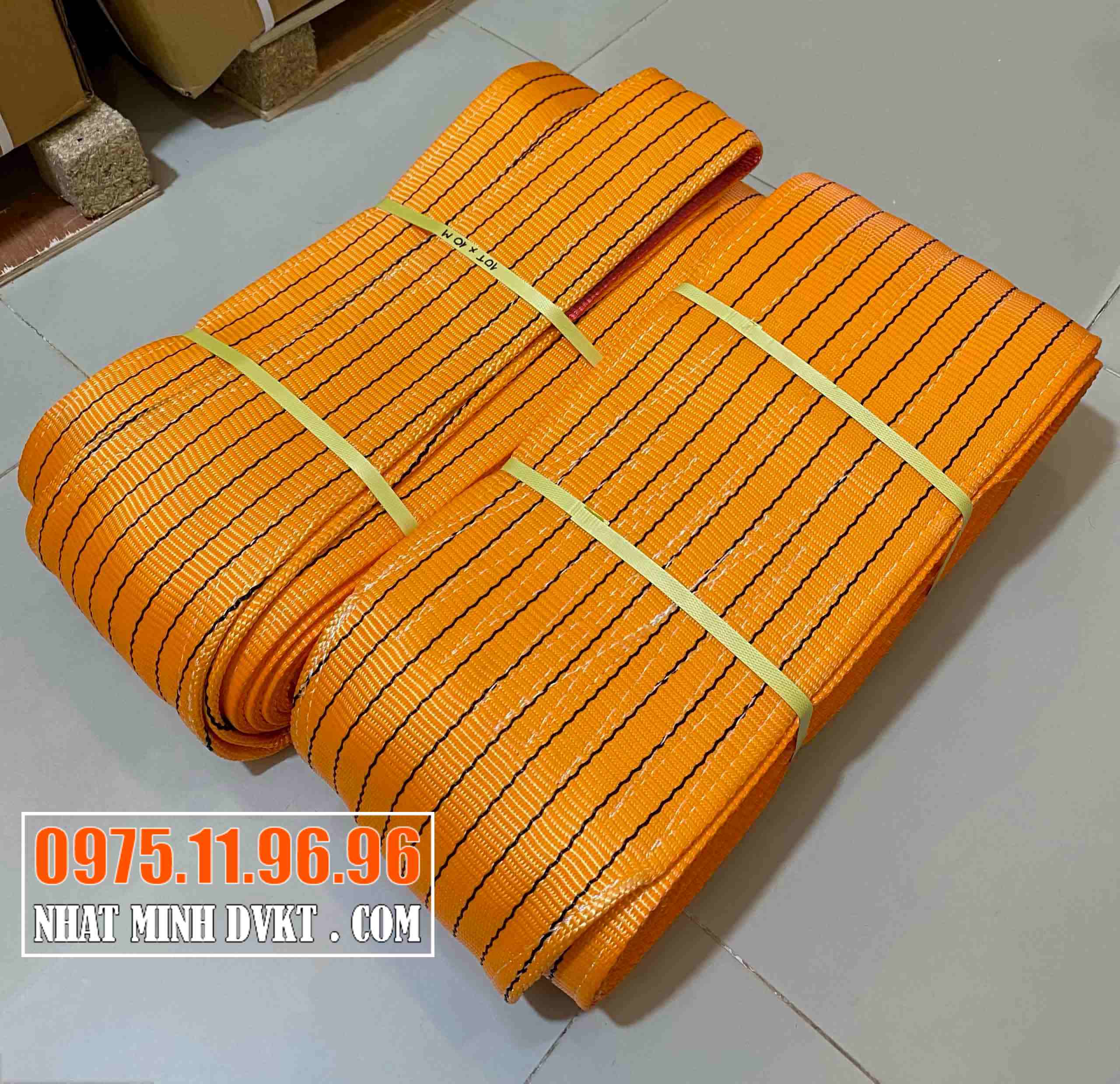 Cáp vải dẹt hai đầu mắt– Webbing Sling eye to eye 20 tấn 4 mét được NHAT MINH DVKT trực tiếp gia công với đầy đủ chứng chỉ xuất xưởng, thử tải bên thứ ba, đem đến sự an toàn và yên tâm cho khách hàng khi sử dụng.