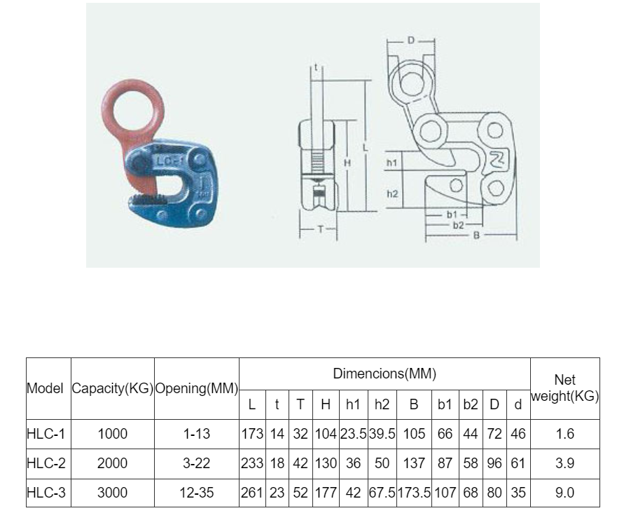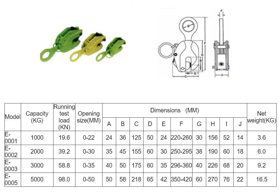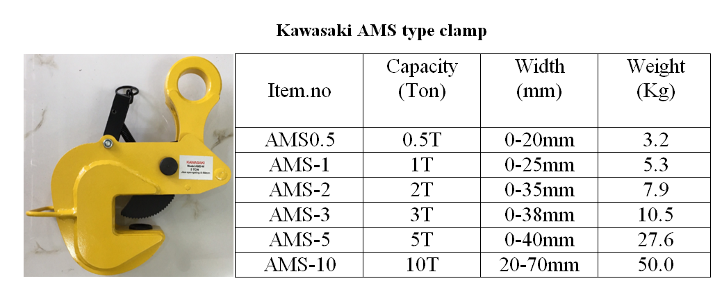 2.Thông số kỹ thuật về 3 loại kẹp tôn của hãng Kawasaki / Kondo: