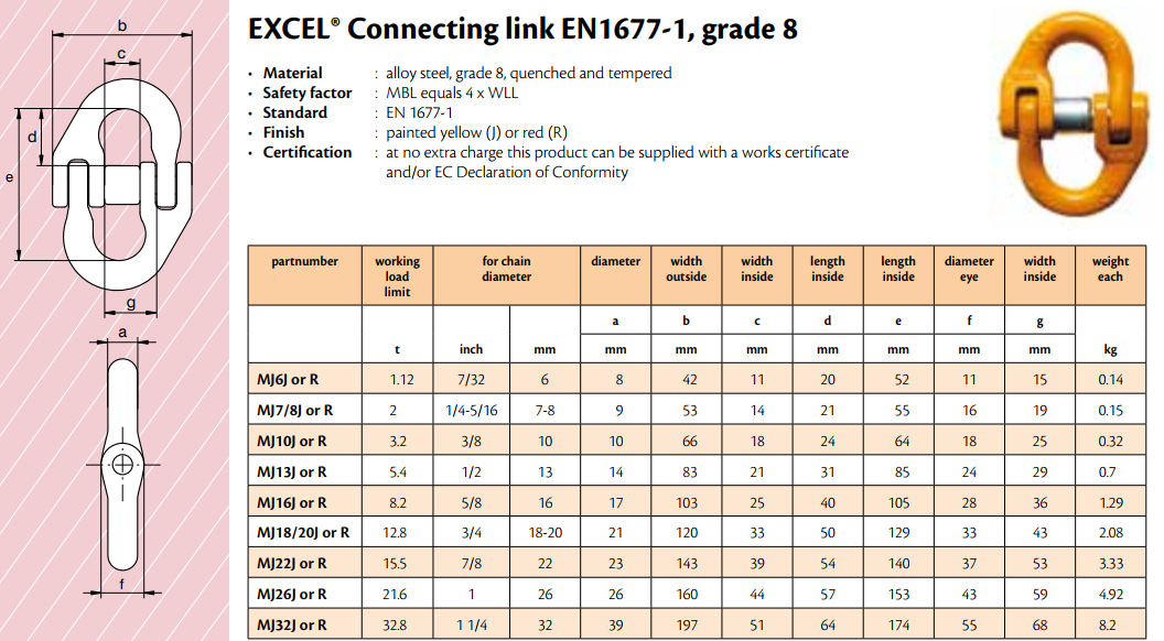 Kết nối Vòng khuyên (Master link) – Xích (Chain), hoặc giữa Xích – Móc cẩu (Hook) trong bộ xích cẩu nâng hạ.