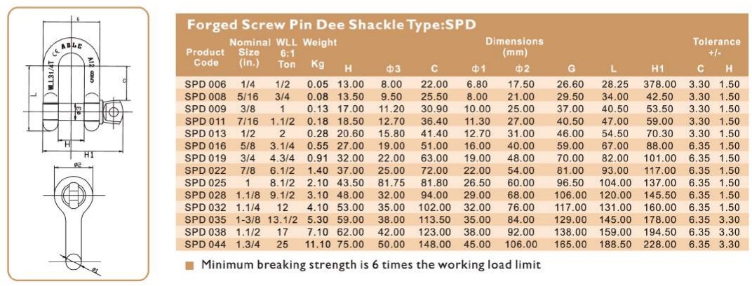 Ma ní able có đầy đủ các kích thước: 1 tấn – 2 tấn – 3.25 tấn – 4.75 tấn – 6.5 tấn – 8.5 tấn – 9.5 tấn – 12 tấn – 13 tấn – 17 tấn – 25 tấn – 35 tấn – 55 tấn – 85 tấn