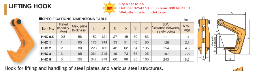 - Móc để nâng thép tấm, thép hình và móc ống.